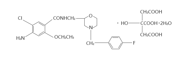 化學(xué)名稱:4-氨基-5-氯-2-乙氧基-N-[[4-(4-氟芐基)-2-嗎啉基]甲基]苯甲酰胺枸櫞酸二水合物。